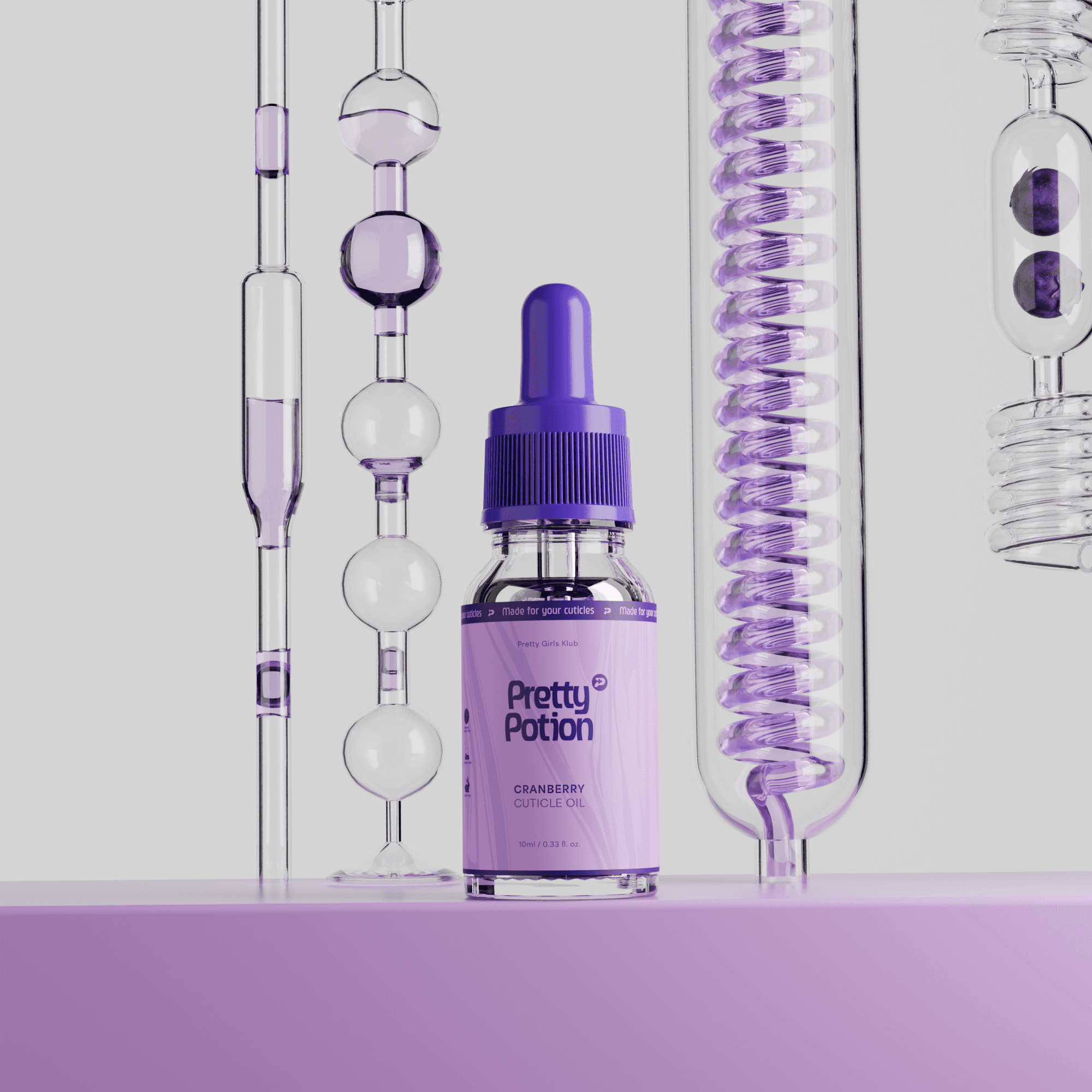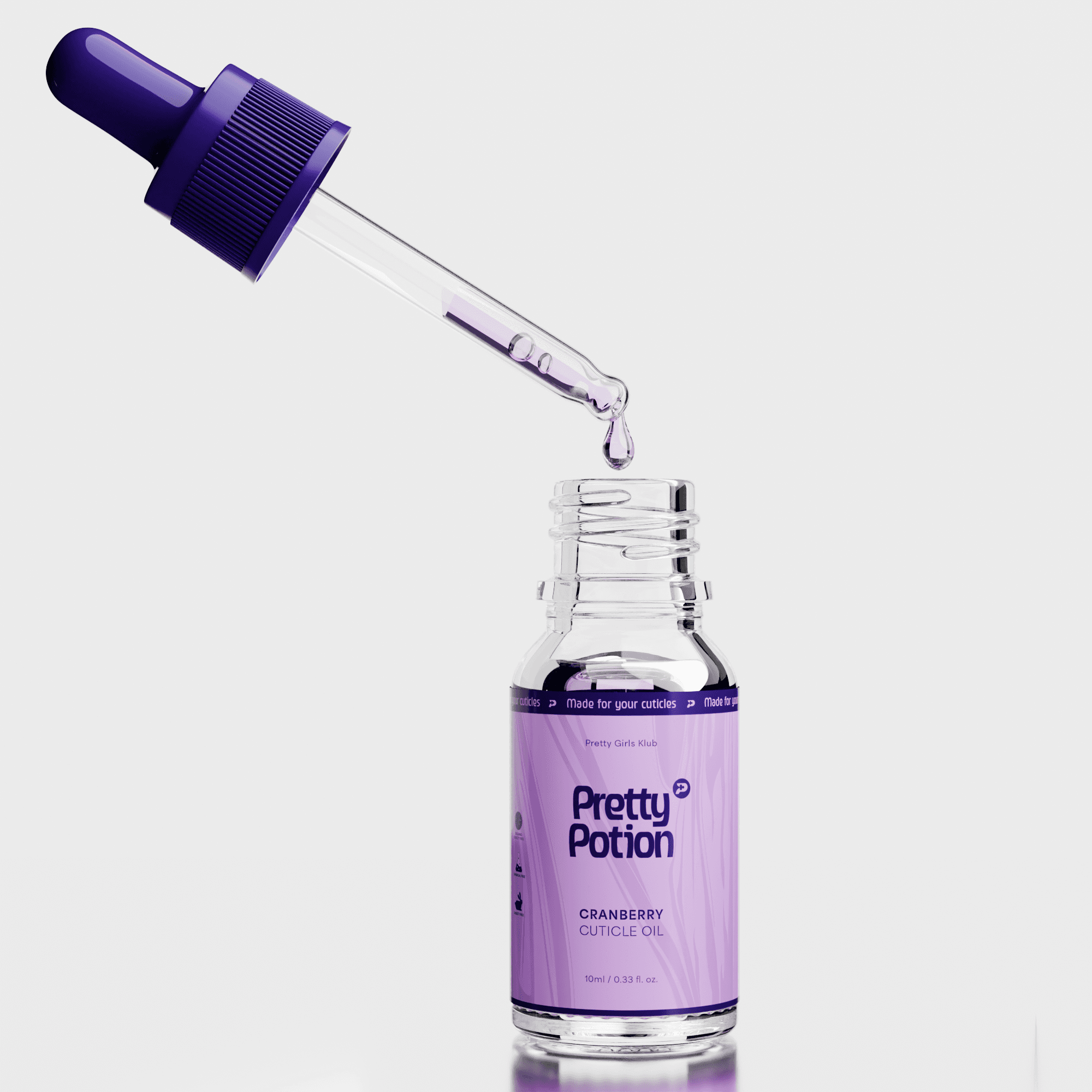 A focused sticker redesign for Pretty Girls Klub’s cuticle oil bottle. Transformed the original label into a premium, potion-inspired design with a shimmering liquid pattern, deep purple banding, playful magical warnings, and full alignment with the updated brand logo and colour palette. Delivered visual consistency, luxury appeal, and stronger brand recognition.