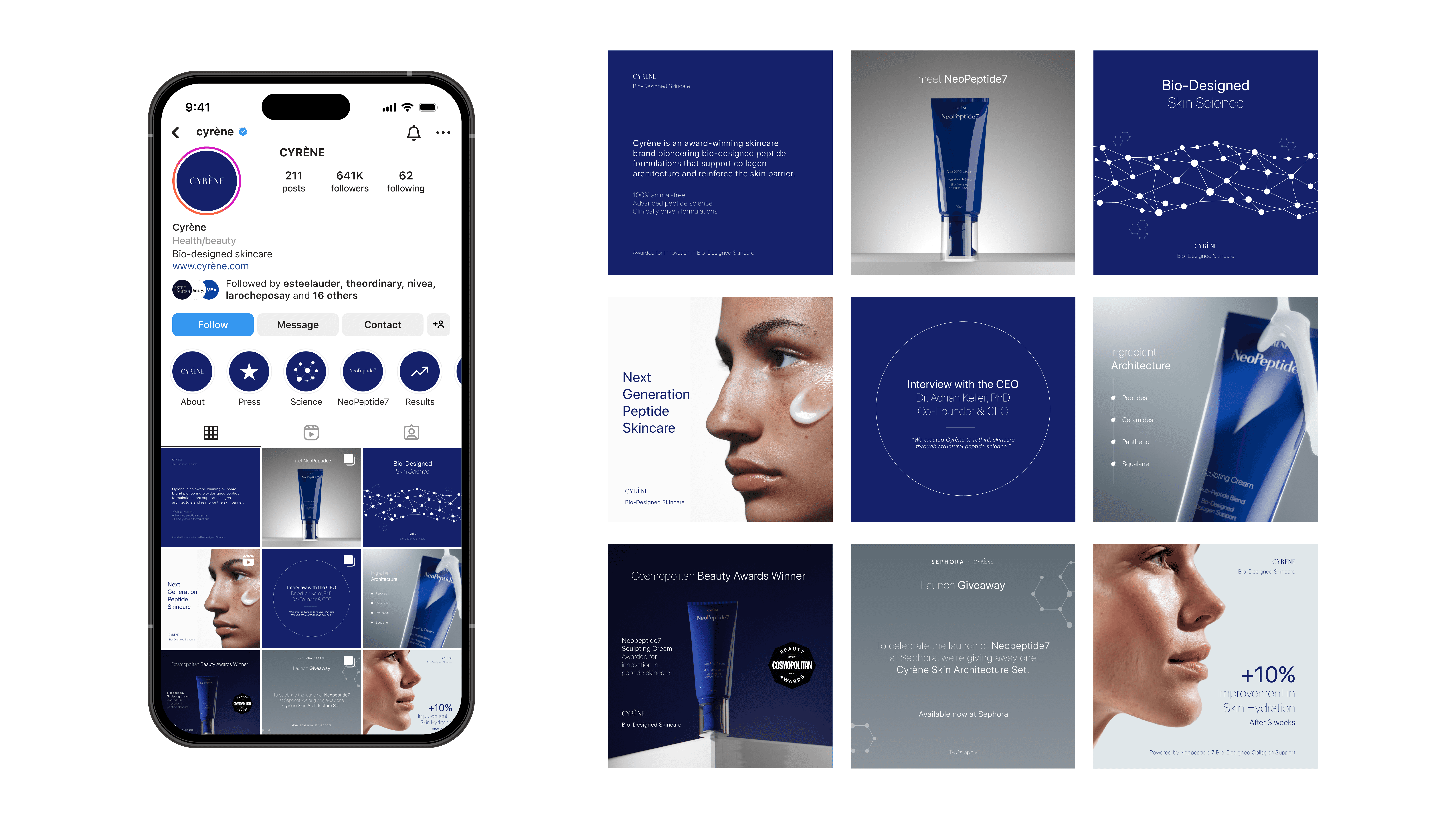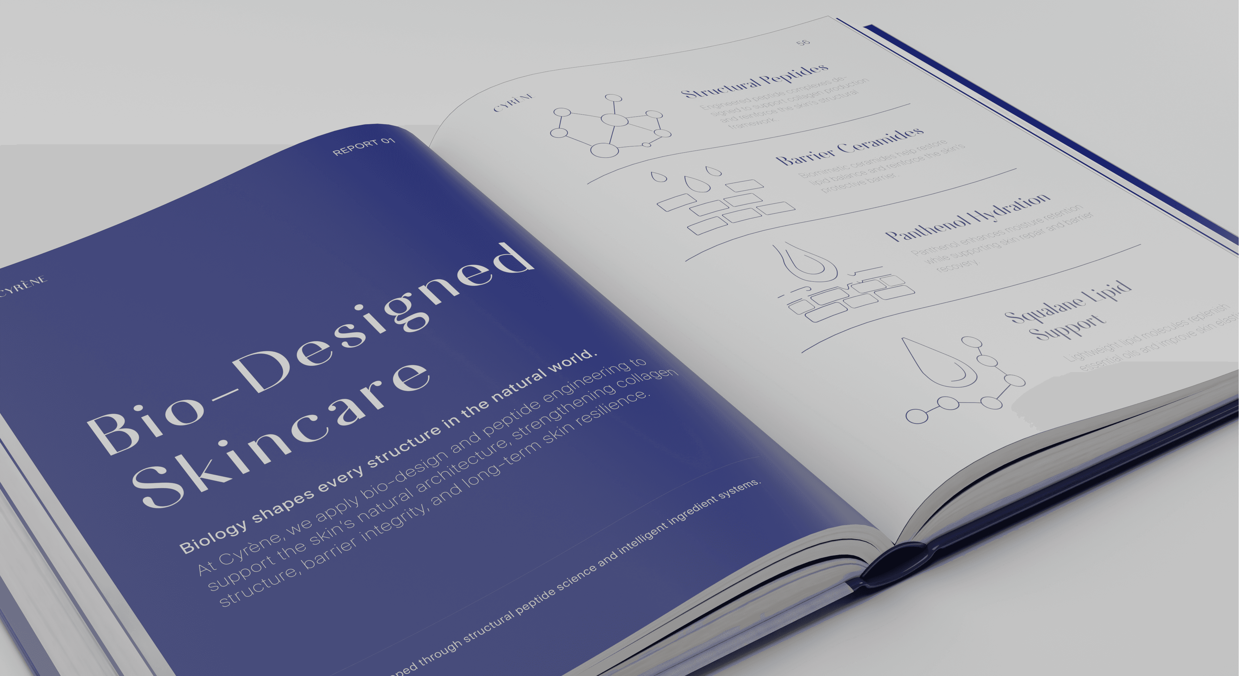 Cyrène was designed as a modern biotechnology skincare brand.